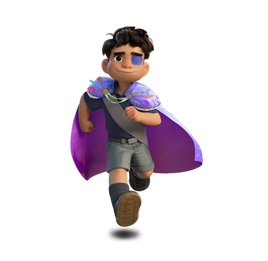 You did it! No number of stars or skies can stop you! Now that you’ve reunited Glordon with Elio and the Ambassadors, you might like to meet some more characters from Elio’s world. Click on their faces below to meet them all, or play again!